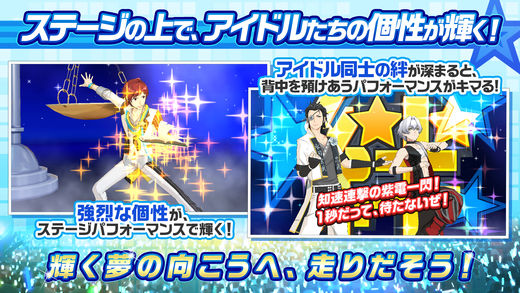 アイドルマスター SideM LIVE ON ST@GE! アプリ 2017年08月30日 EDIT 内容紹介プレイヤーはプロデューサーとなって、個性豊かな経歴を持つ、アイドルの卵たちを次々スカウトし、トップアイドルへと成長させていきます。ーーーーーーーーーーーーーーーーーーーーー◆個性豊かなアイドルが多数登場!◆元医者、元コンビニバイト、元自衛官といった、個性豊かな経歴を持つアイドルの卵たちを次々スカウト!お気に入りのアイドルで、あなただけのオリジナルユニットを組もう!◆レッスンをして、アイドルを育成!◆レッスンやお仕事にアイドルを連れて行き、彼らを育てよう!レッスンでアイドルの能力を伸ばすと、アイドル衣装にチェンジ!お仕事でアイドル同士の絆を深めると、ライブ中に2人の決め技がキマる!◆ステージの上で、アイドルたちの個性が輝く!◆アイドルを育てると、個性が輝く強烈なステージパフォーマンスがキマる!「元外科医 桜庭薫が歌う 閃光のメス!」「元コンビニバイト 鷹城恭二が魅せる レジ捌き!」◆描かれる315プロダクションの物語◆ゲームを進めると次第に明らかになる、彼らの過去・葛藤、仲間たちとの熱い友情の物語。アイドルたちの色々な一面が描かれる!ーーーーーーーーーーーーーーーーーーーーー http://goodslog.blog.shinobi.jp/Entry/6129/アイドルマスター SideM LIVE ON ST@GE!