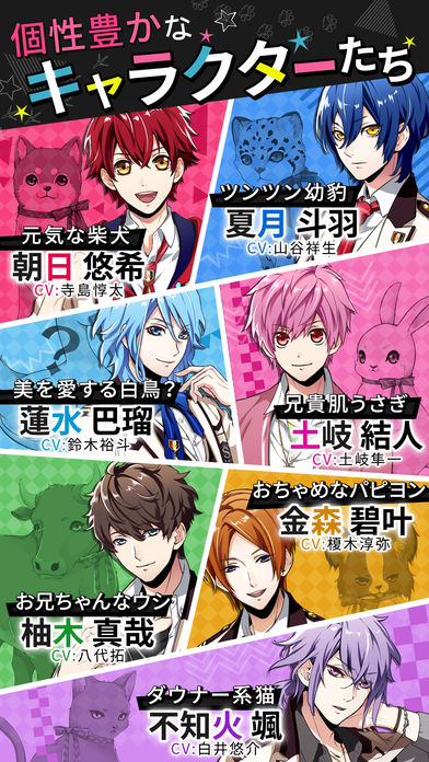アニドルカラーズ アプリ 2017年09月07日 EDIT 出演榎木淳弥 / 白井悠介 / 鈴木裕斗 / 武内駿輔 / 寺島惇太 / 土岐隼一 / 中澤まさとも / 畠中祐 / 森嶋秀太 / 八代拓 / 山谷祥生 / 柿原徹也内容紹介イケメンアイドルたちに獣耳が生えちゃった!豪華声優陣が多数出演◆青春アニマルアイドルゲーム!◆◇ストーリー◇◆動物の能力を持ったアニマルアイドル、通称「アニドル」を夢見る少年たち――カレらが通うアニドル養成学校「シリウス学園」で、キュアマネージャーとしてカレらをサポートすることになったアナタ。個性豊かな7人のアニドルの卵チーム「7Colors(セブンカラーズ)」と、飛んで跳ねて笑ってちょっぴり泣いてのワクワクな日々が始まる――◆◇アプリ概要◇◆【11人のアニドルたちをキュアして育成】元気いっぱいの個性派7人組グループ「7Colors」学園No1の実力を持つハイスペック4人組グループ「Clarity」個性的な11人の中から好きなメンバーをスカウトで選んで、リハーサル&オーディションに挑戦しよう!リハーサルでは、キュートなちびキャラが登場!お気に入りの衣装に着替えて、彼らのステージを華やかに演出しよう! http://goodslog.blog.shinobi.jp/Entry/6182/アニドルカラーズ
