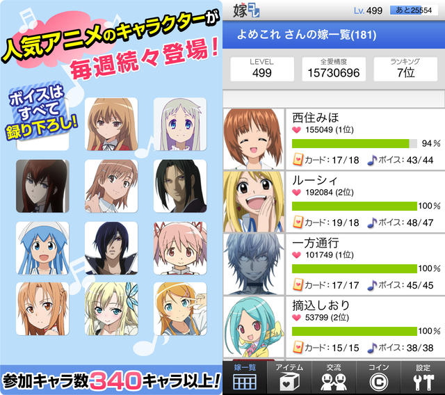 嫁コレ[アプリ] グッズログ 2013年09月15日 EDIT 「嫁コレ」android版 女子部ラインナップ・AMNESIA・カーニヴァル・神様はじめました・ガッチャマン クラウズ・キューティクル探偵因幡・金色のコルダ3・K・劇場版 ブレイク ブレイド・恋戦隊LOVE&PEACE・コードギアス 亡国のアキト・サーバント×サービス・PSYCHO-PASS サイコパス・さよなら絶望先生・しろくまカフェ・翠星のガルガンティア・好きっていいなよ。・蒼穹のファフナー・ソードアート・オンライン・銀の匙 Silver Spoon・DEVIL SURVIVOR 2 the ANIMATION・とある魔術の禁書目録II・となりの怪物くん・夏目友人帳・夏雪ランデブー・ノブナガ・ザ・フール・薄桜鬼・八犬伝―東方八犬異聞―・はたらく魔王さま!・遙かなる時空の中で5・VitaminZ・FAIRY TAIL・伏 鉄砲娘の捕物帳・BRAVE10・魔界王子devils and realist・ミラクル☆トレイン~大江戸線へようこそ~・メガネブ!・ログ・ホライズン http://goodslog.blog.shinobi.jp/Entry/1563/嫁コレ[アプリ]