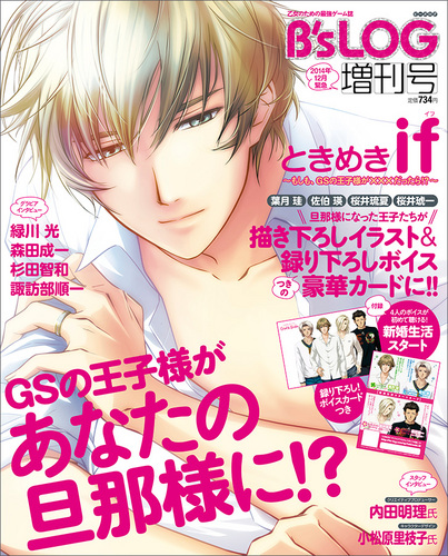 B’s-LOG 2014年緊急増刊号 ときめきif~もしも、GSの王子様が×××だったら!?~ グッズログ 2014年10月14日 EDIT 付録:録り下ろしによる「新婚生活スタート」ボイスカードAmazonB's-LOG2014年緊急増刊号 ときめき if -もしも、GSの王子様が×××だったら!?- 『GS』シリーズの王子様4人のキャラクターたちによる、描き下ろしイラストをあしらったボイストレーディングカードが11月8日に発売!それを記念してビーズログ初の緊急増刊号を発売いたします。『GS』シリーズを手掛けたスタッフ・キャストインタビューとともに「ときめきif」の魅力を紹介!さらに付録として「ときめきif」カードを1枚封入予定です。旦那様になった王子たちが描き下ろしイラスト&録り下ろしボイスつきの豪華カードに!!≪対象キャラクター:葉月 珪 佐伯 瑛 桜井琉夏 桜井琥一≫≪内容≫■付録4人のボイスが初めて聴ける!録り下ろしによる「新婚生活スタート」ボイスカードつき!■全カード絵柄&小松原里枝子氏描きおろしイラストを収録・「ときめきif」全20種のカードの詳細を掲載!・本企画ために小松原里枝子氏が描きおろしたイラストを大判で収録!・内田明理氏書きおろしによる、ボイスカードの台詞を掲載!■「ときめきif」ボイスカードとは?「ときめきif」特設WEBサイトと連動したボイスカードの詳細を掲載!カードの種類と楽しみ方を解説!■参加スタッフインタビュークリエイティブプロデューサー・内田明理氏キャラクターデザイン・小松原里枝子氏■グラビアインタビュー緑川 光/森田成一/杉田智和/諏訪部順一 http://goodslog.blog.shinobi.jp/Entry/2192/B’s-LOG 2014年緊急増刊号 ときめきif~もしも、GSの王子様が×××だったら!?~