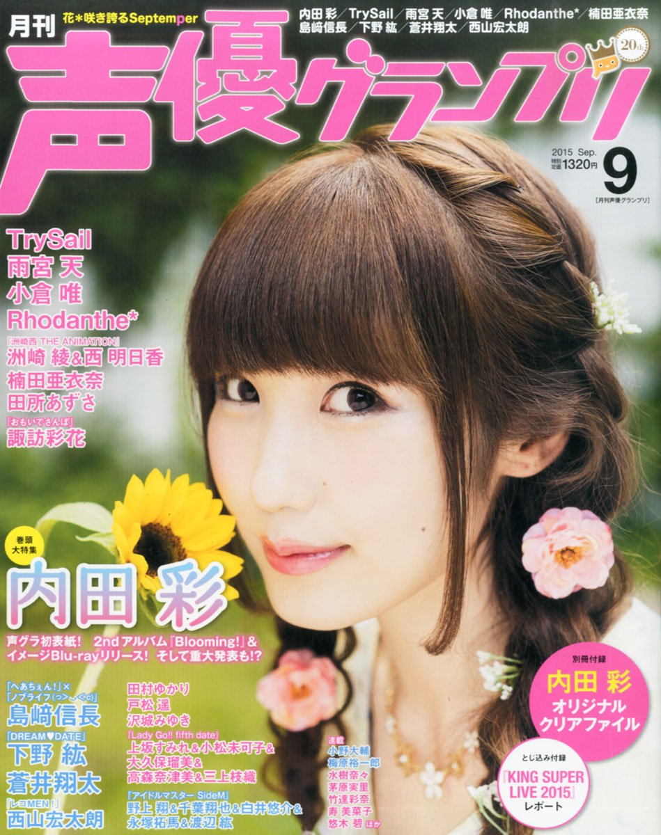 声優グランプリ 2015年 09 月号 グッズログ 2015年07月08日 EDIT アニメイトオンライン900【雑誌】声優グランプリ 2015年9月号Neowing声優グランプリ 2015年9月号Amazon声優グランプリ 2015年9月号楽天ブックス声優グランプリ 2015年9月号【巻頭大特集】内田 彩声グラ初表紙! 2ndアルバム『Blooming!』&イメージBlu-rayリリース! そして重大発表も!?【別冊付録】内田彩オリジナルクリアファイル【とじ込み付録】『KING SUPER LIVE 2015』レポート【グラビア&インタビュー】島崎信長 「へあちぇん! 」×「ノブライフ」下野 紘 「DREAM DATE」蒼井翔太西山宏太朗 「レコMEN! 」…and more http://goodslog.blog.shinobi.jp/Entry/3123/声優グランプリ 2015年 09 月号