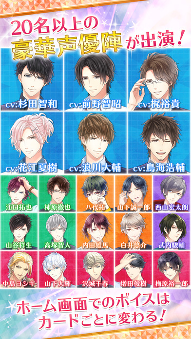 スタンドマイヒーローズ アプリ 2016年12月02日 EDIT 内容紹介□■美麗イラスト×豪華声優陣■□刑事やアイドル、作家など、現代のイケメン「ヒーロー」をスカウトして自分だけのチームを結成!?「スタマイ」には、20人以上の個性的で魅力的なイケメンキャラが登場します!しかも全キャラが生き生きと動く!喋る!全メインキャラに、豪華声優陣によるフルボイスカードストーリー付き!梶裕貴さん、杉田智和さん、柿原徹也さん、増田俊樹さん、梅原裕一郎さんなど、総勢20名以上が出演!また、メインビジュアルは「ドラッグ王子とマトリ姫」を支える大人気クリエイター陣が担当!□■予測不能ドラマ■□舞台は現代、東京。物語の主人公(あなた)の次のミッションは、様々なイケメンをスカウトしてチームを結成すること!天才高校生から、トップデザイナー、名家の執事、果ては闇医者まで、個性あふれる「ヒーロー」たちを相手に奔走するあなたは、やがてドラマチックな運命に巻き込まれていくことに……。予測不可能なメインシナリオに大注目!さらに、それぞれのキャラとの「はじめて」を描くサイドストーリーも多数用意!メインシナリオでは見られない、カレの素顔や過去なども見ることができます!□■中毒性パズル■□スカウトしたヒーローとチームを組んで、シンプルルールの本格パズルにチャレンジ!メンバーの様々なスキルでゲームを有利に進めましょう!パズルをクリアすると、チームのメンバーとのキズナがアップ!キズナが最大まで深まると、隠された一面が見られる特別なフルボイスストーリーが解放されます。 http://goodslog.blog.shinobi.jp/Entry/4958/スタンドマイヒーローズ